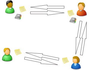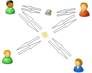 An increasing number of people are coming to understand intuitively the difference between traditional peer-to-peer document sharing modes where multiple instances of documents exist, at least once on each client machine. You know the drill, you attach a document to an email, the recipient opens the attachment, edits it, saves it and then attaches the saved new version to a new email and sends it back. Before long, there are multiple copies of the document and it can be difficult to know how the document evolved. In the case of several people, it can even be difficult to know which version of the document is the current one. There may not even be one single latest version, as two people may edit two different earlier versions at once. Stitching these all back into a master document is not easy.